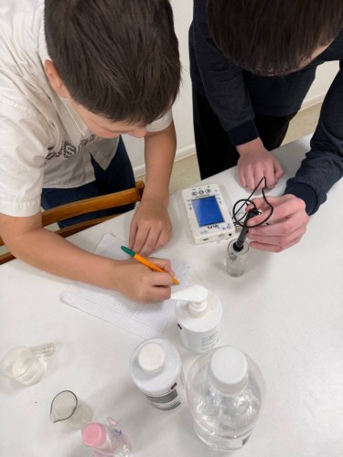 19 декабря состоялось занятие по внеурочной деятельности в центре естественно-научной и технологической направленностей "Точка Роста", тема занятия "Измерение реакции среды косметических моющих средств"